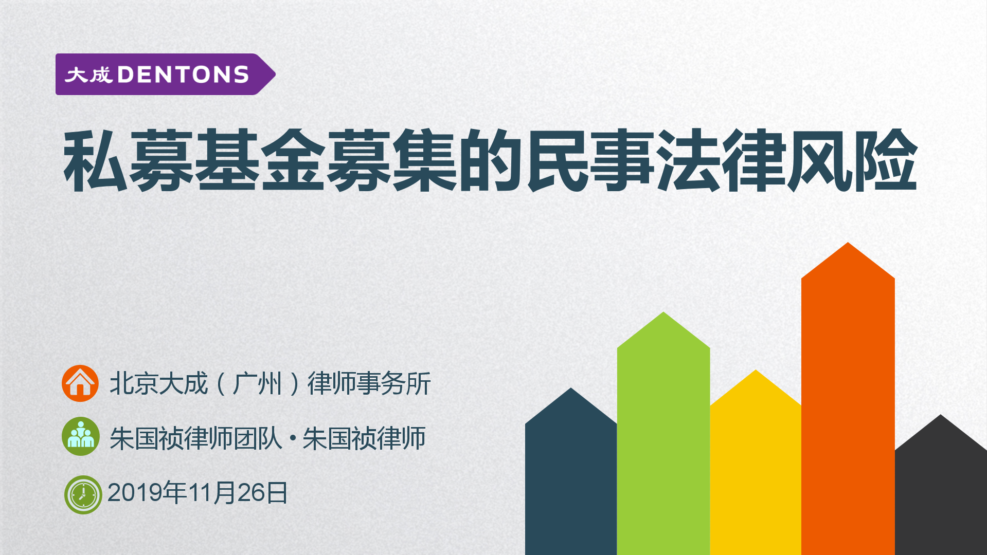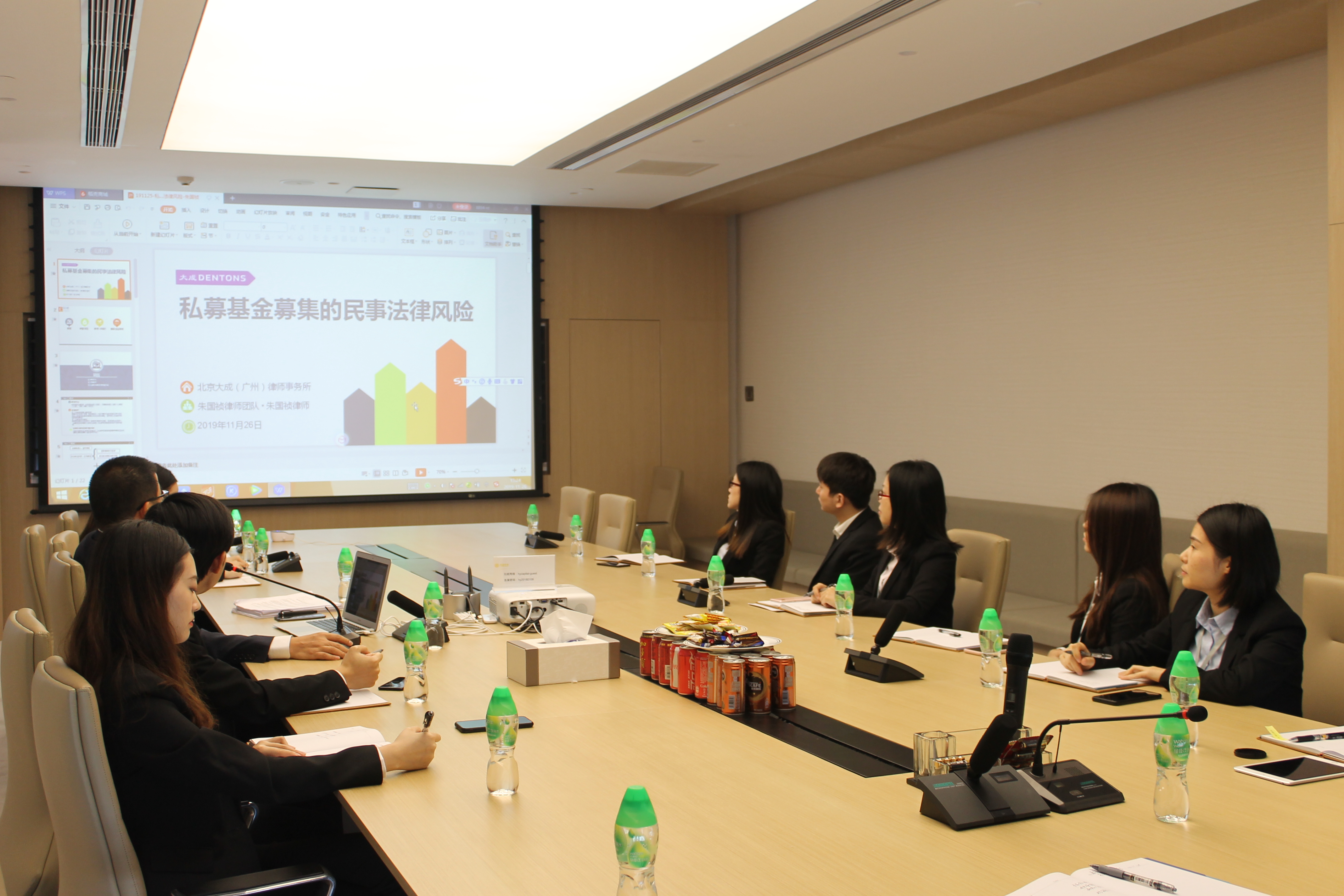 2019年11月26日北京大成(广州)律师事务所朱国祯律师团队应邀莅临我司开展《私募基金募集的民事法律风险》主题培训讲座活动。